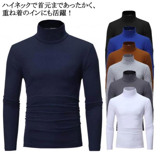 インナーシャツ tシャツ 秋 タートルネック 長袖 インナー ロンT 秋服 長袖 カットソー 保温 スリム ハイネック トップス メンズ フィット ス