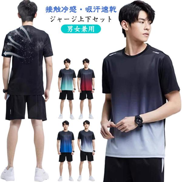 上下 スポーツウェア 半袖 吸汗速乾 ジャージ 接触冷感 トレーニングウェア セットアップ メンズ ジャージ ストレッチ ランニングウェア ジム ヨガ