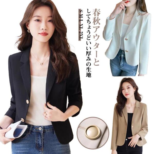 レディース 韓国風 スーツ生地 キレイめ フォーマル 夏 高校生 カジュアルスーツ 長袖 ショート丈 ブレザー 通勤 テーラードジャケット 春 テーラ