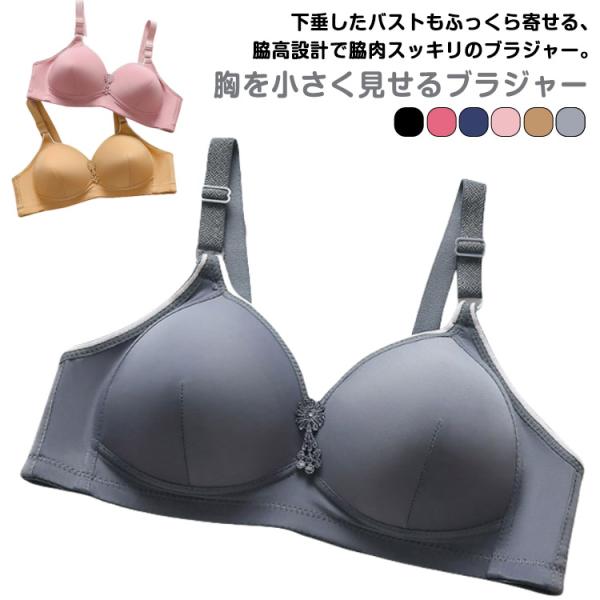 【2枚セット】 ノンワイヤー 薄手 大きいサイズ 胸が小さく見えるブラ レディース 【2枚セット】 胸を小さく見せるブラジャー 着痩せブラ 軽量 痛く