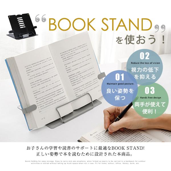 ブックストッパー ブックスタンド 書見台 卓上 読書スタンド ブックレスト 本立て 折り畳み レシピ 譜面台 スチール 丈夫 楽譜スタンド 読書