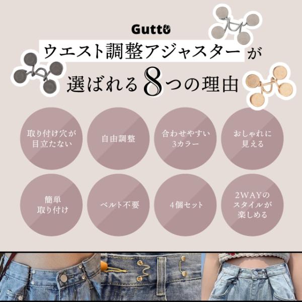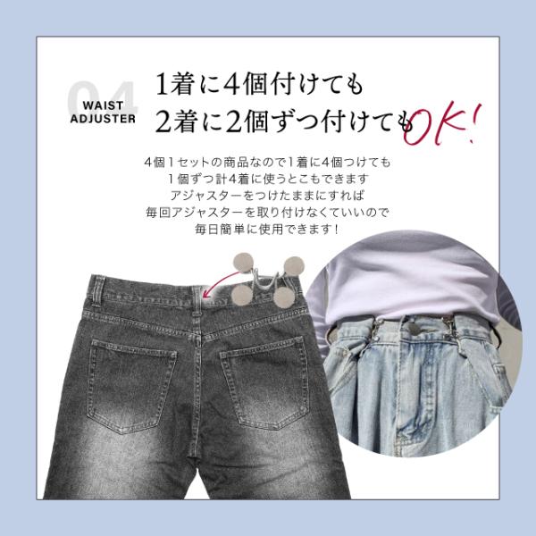 ウエスト調整アジャスター ウエストアジャスター 調整 ズボン ボタン ウェスト クリップ スカート パンツ スラックス おしゃれ ベルト不要 2WAY 4個セット