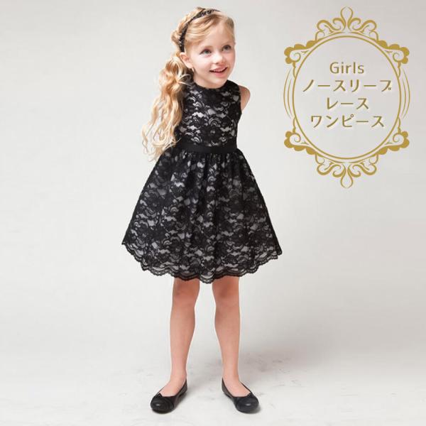 ワンピース ノースリーブ フォーマル 女の子 キッズ ガールズ レース ブラック フレアスカート 120 130 140