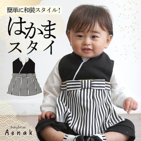 袴ロンパース ベビー袴 男の子 家紋 ベビー 赤ちゃん スタイ 足袋 靴下 お食い初め 節句 百日祝い フォーマル 60 70 80 90