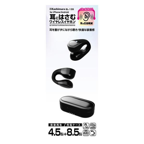 カシムラ 完全ワイヤレス ステレオイヤホン オープンイヤー AAC BK BL-139 ブラック イヤーカフ型 完全ワイヤレスイヤホン フルワイヤレスイヤホン ながら聴き 爆買