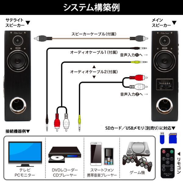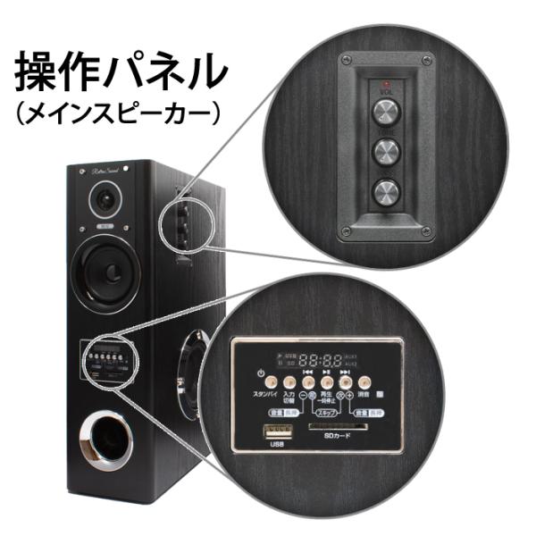 クマザキエイム タワー型 アンプ内蔵スピーカー 80W ダイナミックサウンド・スピーカー Retro Sound DS-12 黒木目調 ブラック タワースピーカー PCスピーカー トールボーイ型 フロア型