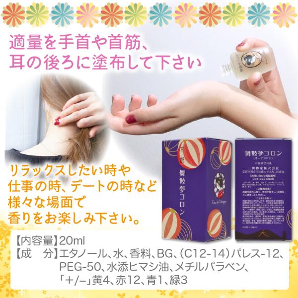 舞妓夢コロンは香水の中でも比較的香りが優しいオーデコロンです。