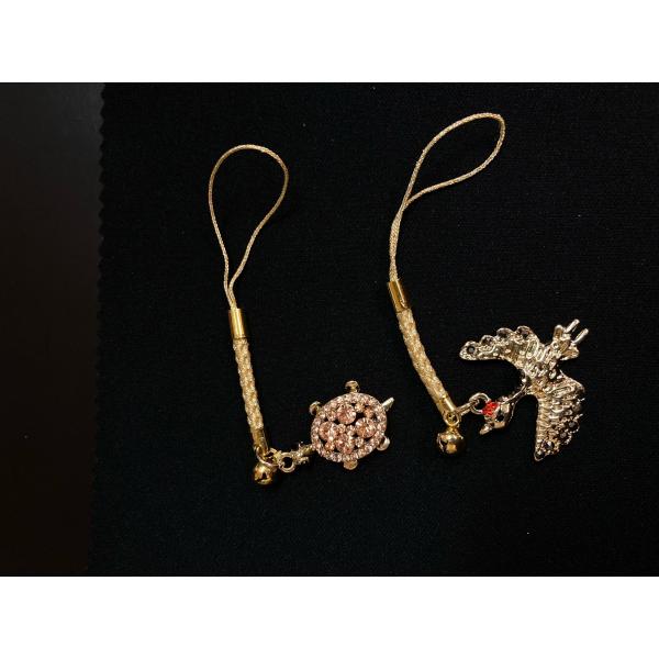 鶴亀長寿 本体約鶴2.7cm、亀2.5cm 根付紐約7cm
