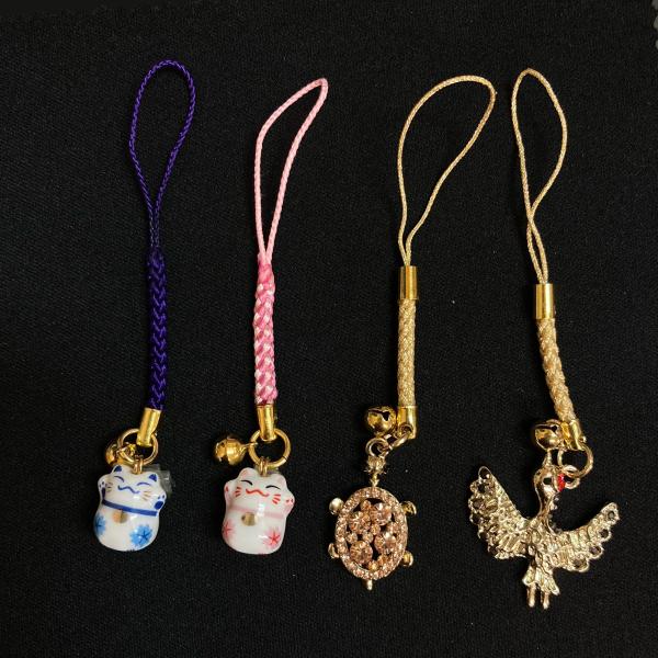 開運ペア根付 (招き猫、鶴亀)家庭円満 不老長寿 縁起 ストラップ 開運 猫 鶴 亀