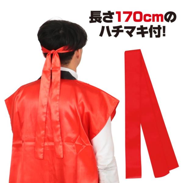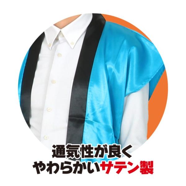 Lサイズ 高校生〜成人向け ソフトサテンロングハッピ ハチマキ付 1個入 赤 青 黄色 白 黒 紫 桃 緑 橙 金【ゆうパケット対応】