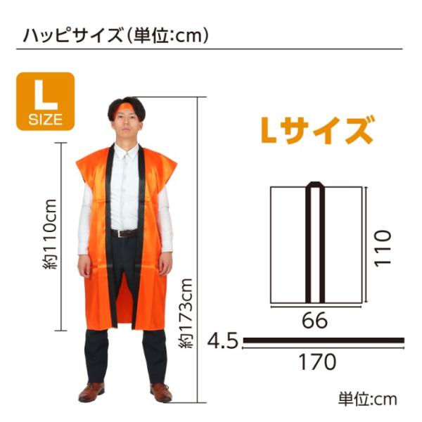商品サイズ:ハッピ:660×1100mm ハチマキ:1700×45mm
