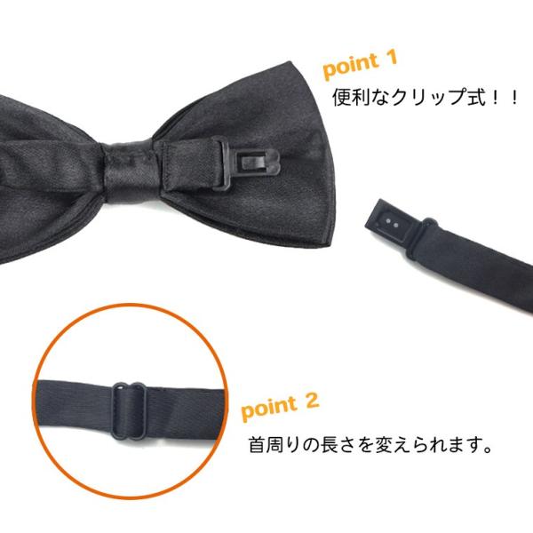 光沢のある蝶ネクタイです。フォーマルにもカジュアルにもおすすめ!