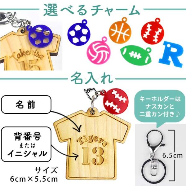 サッカー バスケ 野球 Tシャツキーホルダー 木製 チャーム付き 6cm アンシャンテラボ【無料ギフトボックス付】【ゆうパケット対応】