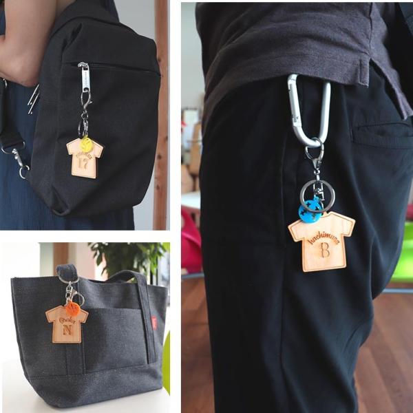 豊富なデザインから選べる木製のTシャツ型キーホルダー。