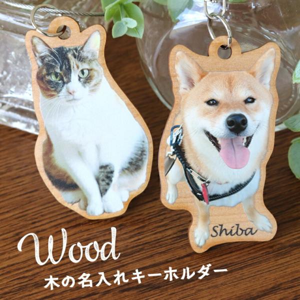 名入れ可 ペット 写真キーホルダー 木製 アンシャンテラボ【無料ギフトボックス付】【ゆうパケット対応】
