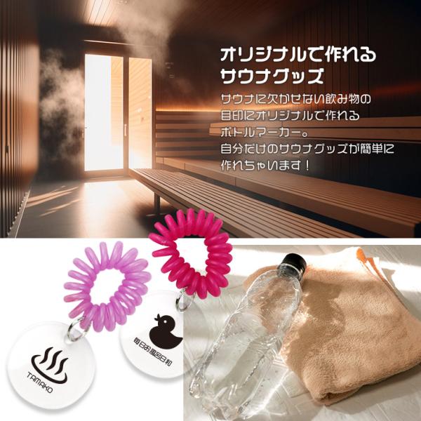サウナに欠かせない飲み物の目印にオリジナルで作れるボトルマーカー。