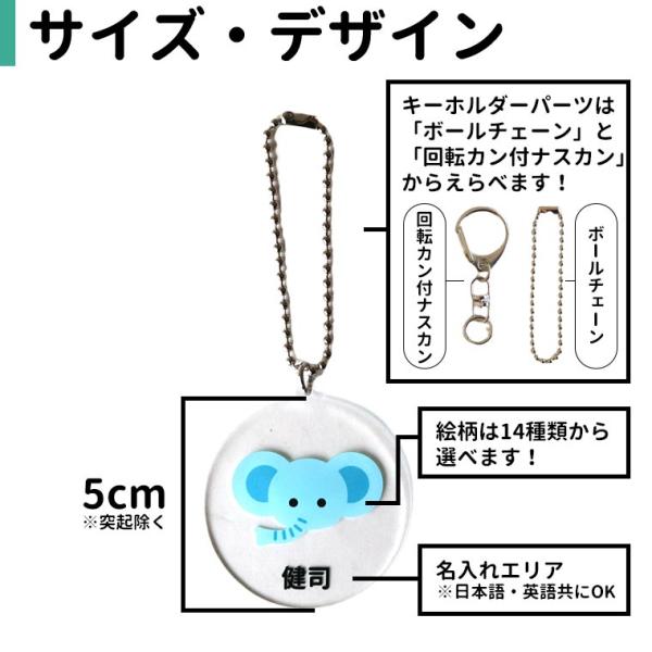 動物の顔が大きくプリントされているから文字の読めないお子さまにも見つけやすいお名前キーホルダー!