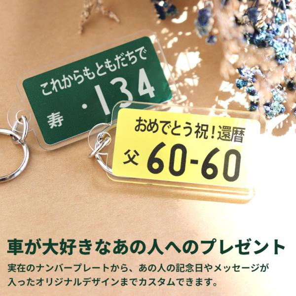 実在のナンバープレートから、あの人の記念日やメッセージが入ったオリジナルデザインまでカスタムできます。