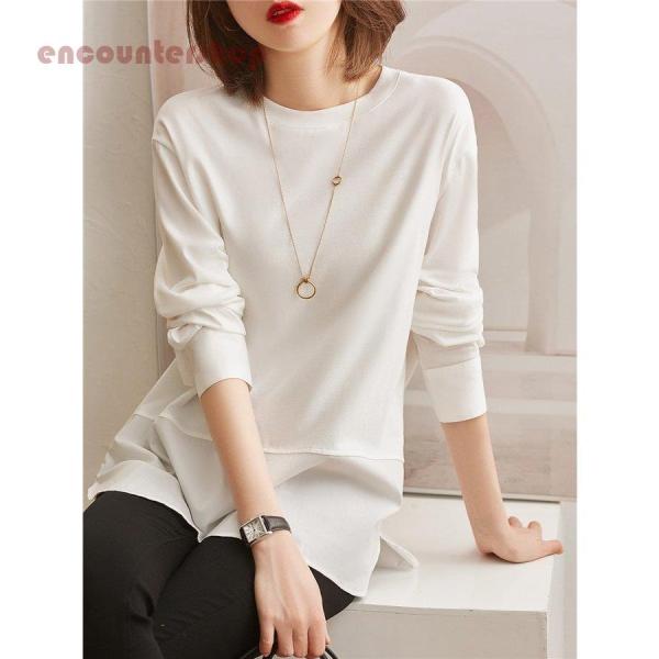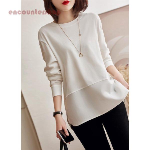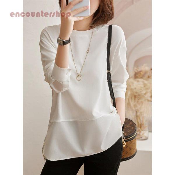 トップス レディース 40代 20代 長袖 春 秋 ブラウス 白 長袖tシャツ 無地 大きいサイズ おしゃれ きれいめ シンプル 着痩せ 体型カバー ゆったり 大人 新品