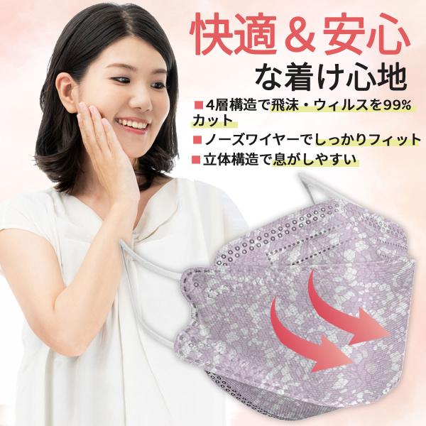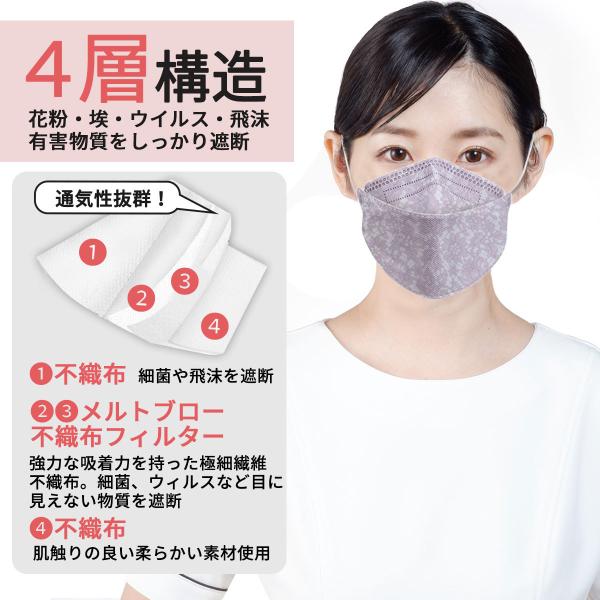 商品名:マスク KF94 不織布 レースマスク 10枚入り 花柄 柳葉型 4層構造 3D 立体 使い捨て 韓国マスク 小顔に見える おしゃれ 韓国風 ウィルス対策 花粉症 衛生用品