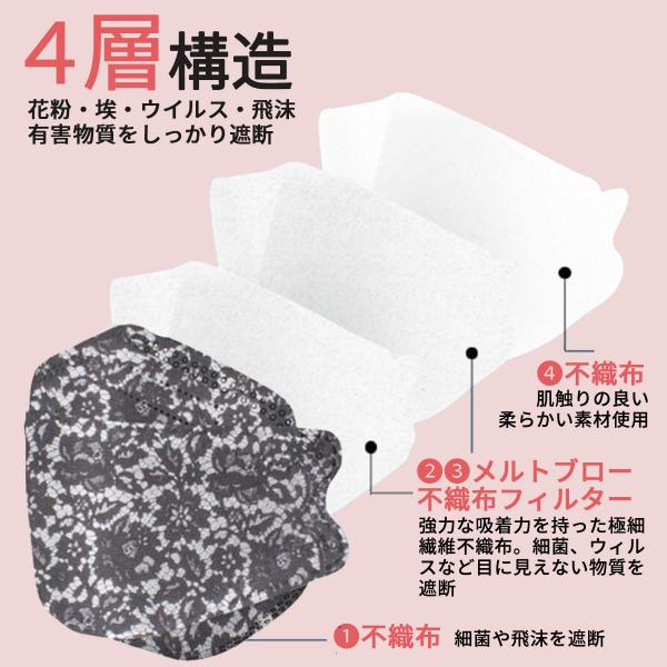 マスク KF94 不織布 レースマスク 10枚入り 花柄 柳葉型 4層構造