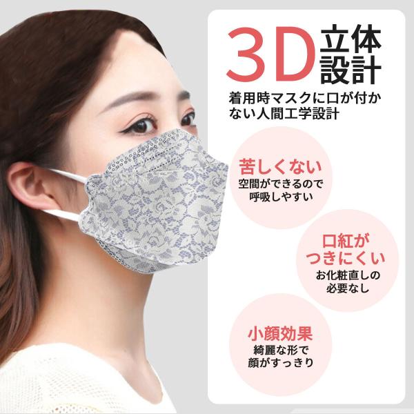 マスク KF94 不織布 レースマスク 10枚入り 花柄 柳葉型 4層構造 3D 立体 使い捨て 韓国マスク 小顔に見える 爆買