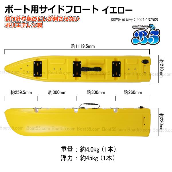 B5 新形状 ポリエチレン製 ボート用サイドフロート 2本セット 全9色 釣り針やヒレが刺さらない 2馬力 ミニボート 自作用 ボート用品
