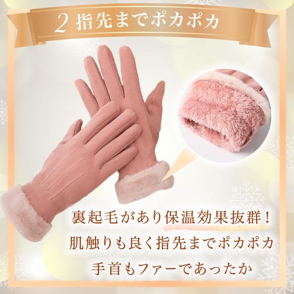 手袋 レディース スマホ 防寒 タッチパネル対応 手首ファー付 秋 冬 おしゃれ かわいい 手ぶくろ 防風 保温 裏起毛