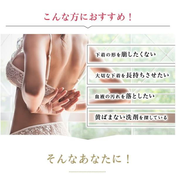 もみ洗いせずにつけ置き、5分で洗えるので、お手入れ簡単! 下着長持ち!また、黄ばみを防ぎ、血液の汚れなどもよく落ちます。
