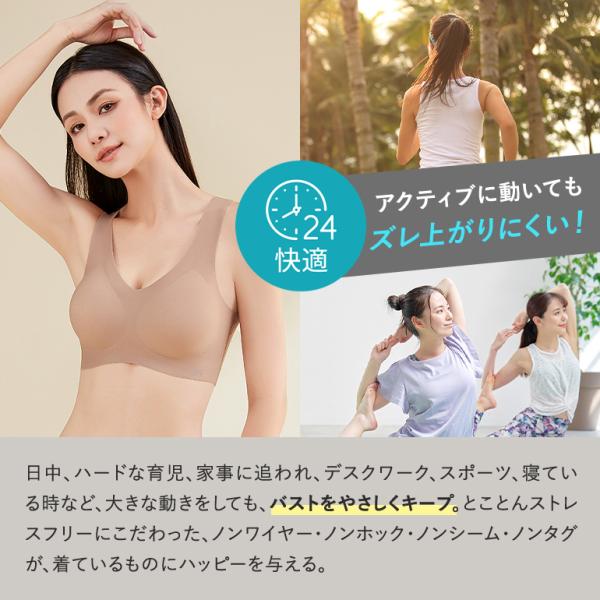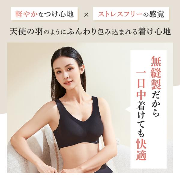 天使が舞い降りてきた!羽根のような軽やかなつけ心地と360°縫い目が無いノーブラ感覚は、一日中着ていてもストレスフリー。