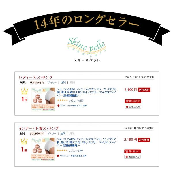 ショーツ 下着 レディース 深ばき マキシショーツ ノンシーム スキーネペッレ CARO スタンダード 綿マチ ストレスフリー 吸湿速乾 抗菌 イタリア製 ゴム不使用