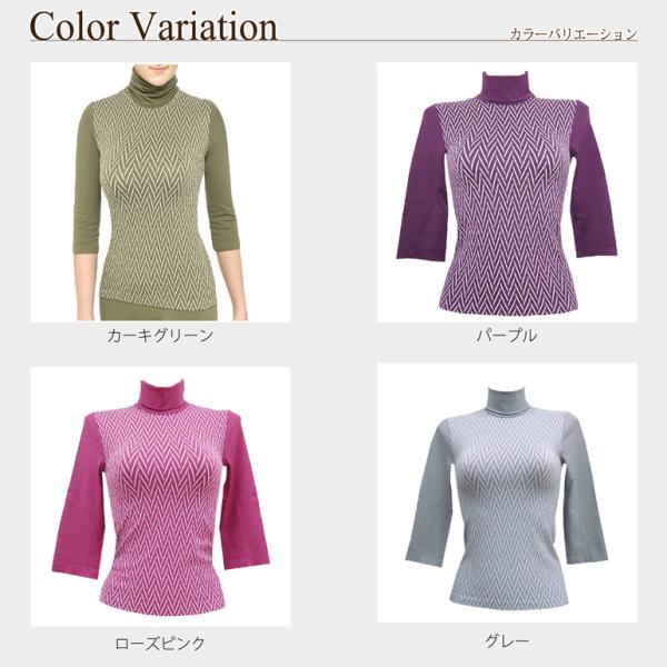 長袖 インナー あったか レディース ハイネック 7分袖 スキーネペッレ ヘリンボン 抗菌 マイクロファイバー ストレスフリー シームレス イタリア製 抗菌 柄