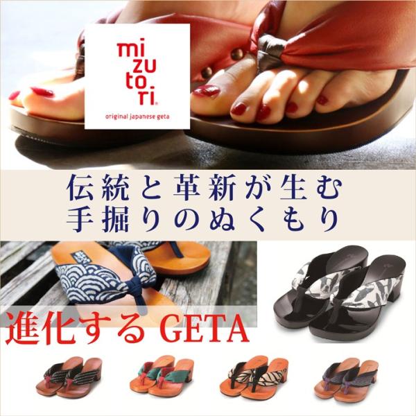 下駄 みずとり センス・SENSEスウィングw 4.5cmヒール KTW-11 幾何だ円 黒・ワイン こだわりの手彫り mizutori ヒール付き下駄 水鳥 げた 日本製 送料無料