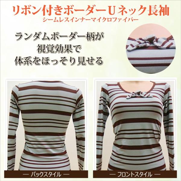 長袖 インナー レディース ボーダー 柄 Uネック スキーネペッレ リボン付 抗菌 マイクロファイバー ヨガ ストレスフリー シームレス イタリア製 あったか 丸首