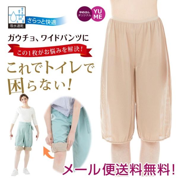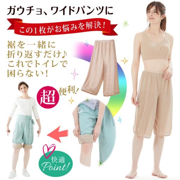 ペチパンツ ガウチョ ワイドパンツ 用 楽ちんペチパンツ メッシュ タイプ 吸水速乾 トイレで裾が床につくのを防ぐ 通気性 まとわりつき 透け防止 軽い 薄い