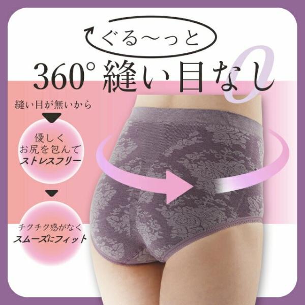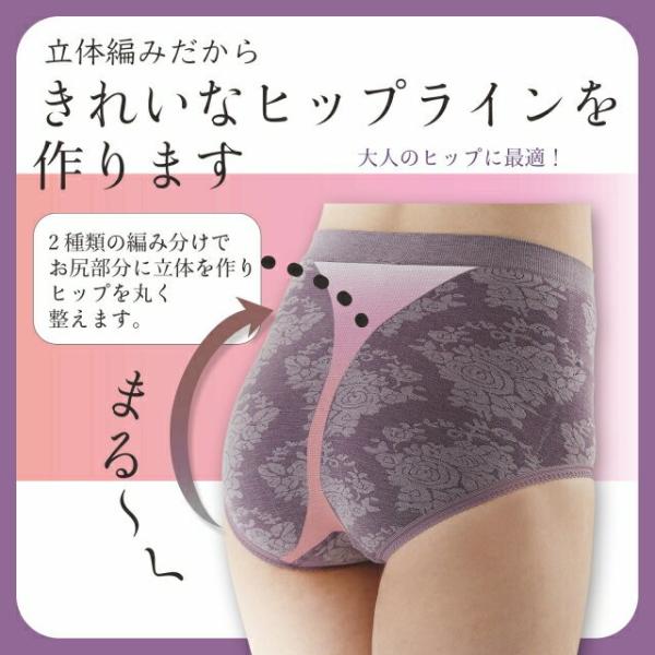 商品紹介 : 360度縫い目なしで、大人のヒップを丸くきれいに包み込む、クラシカルでお洒落なローズ柄ジャガードすっぽりショーツです。