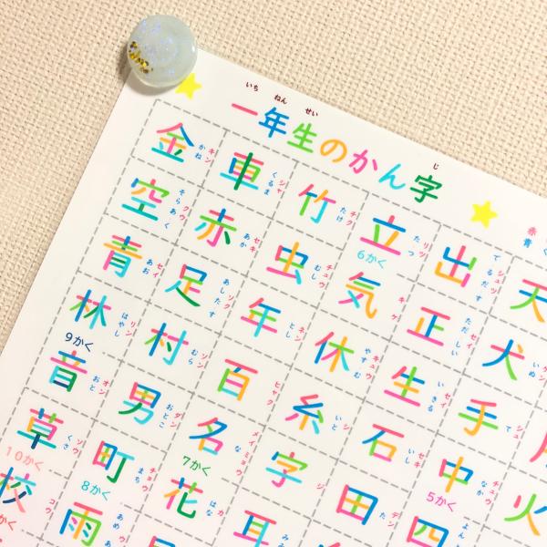A4サイズのカラフルな一年生の漢字ポスターです。