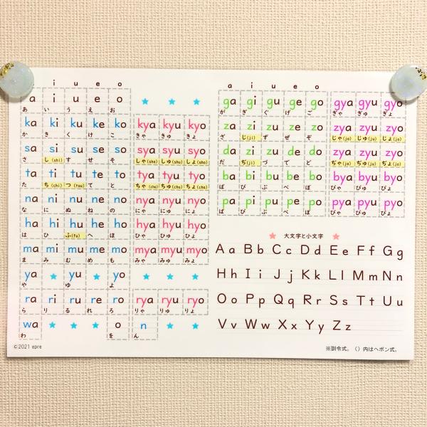 A4サイズのカラフルなローマ字表です。(epreオリジナルデザイン)