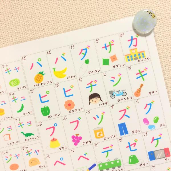 A4サイズ カタカナポスター(濁音・半濁音・拗音) 書き順色分け カタカナ表 学習ポスター 防水