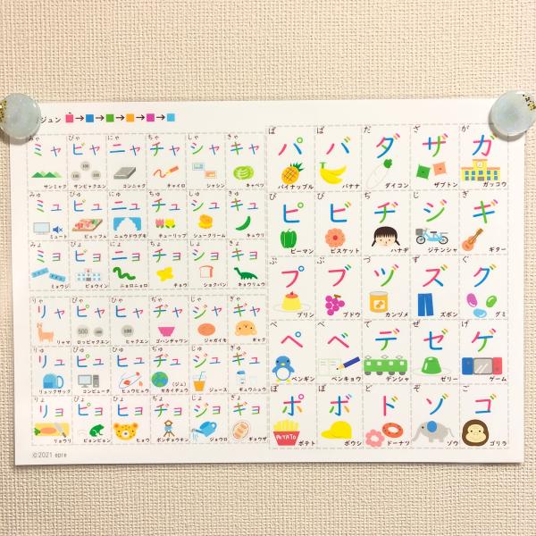 A4サイズ ひらがなポスター(濁音・半濁音・拗音) 書き順色分け ひらがな表 学習ポスター 防水