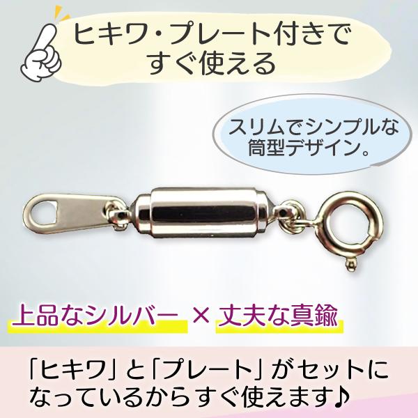 パーツアンドパーツ マグネットクラスプ シルバー 脱着式 磁石 真鍮製 ネックレス 留め具 ヒキワ・プレート付 筒型 簡単装着 強力 シルバーカラー 送料無料