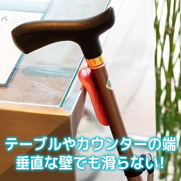 ・テーブルやカウンターの端、垂直の壁でも杖が滑らないで止まります。