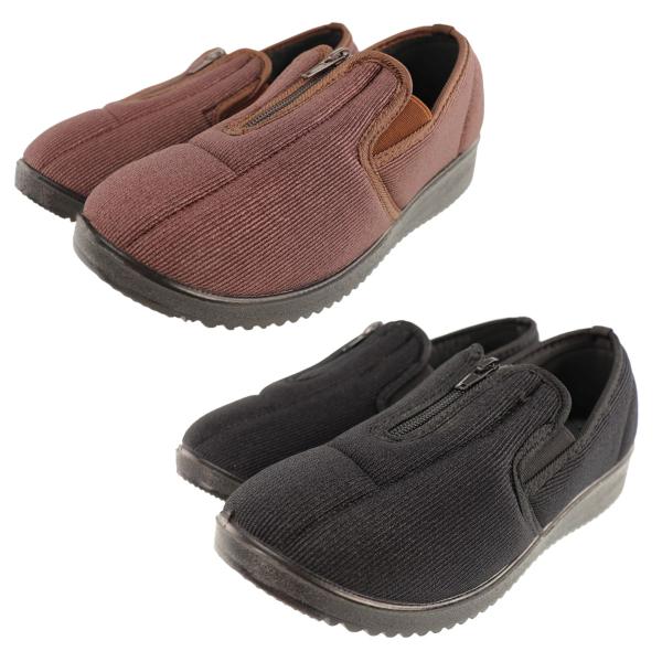 【特価・訳アリ】介護シューズ ラクラクケアシューズ リハビリシューズ センターファスナー ジッパー 軽量 男女兼用 ブラウン ブラック kp_15023 基本送料無料