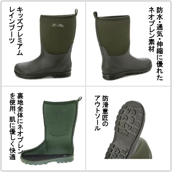 防水性・通気性・伸縮性 三拍子の最高素材、ネオプレンゴムを使用した キッズ プレミアムレインブーツ。