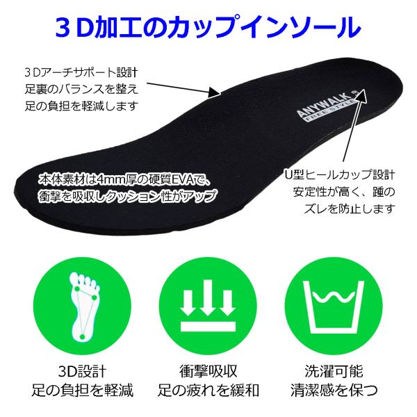 カップインソールは取り外して洗濯できますので、靴の中をいつも清潔な状態に保つことが出来ます。