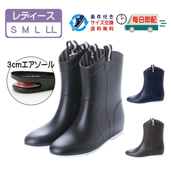 【特価・アウトレット】レディース レインブーツ ミドル丈 ブーツ 3cmエアー入りインソール プルストラップ 長靴 雨靴 22.0 〜 25.0cm af_18034 基本送料無料