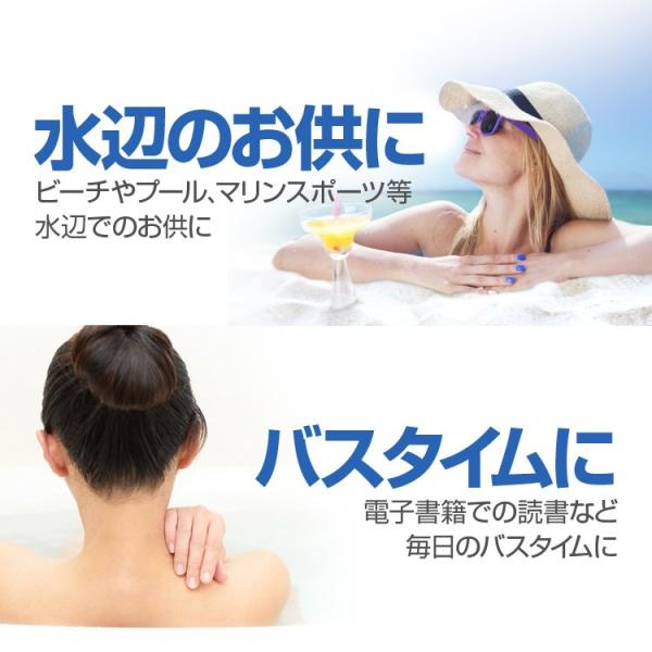 海水浴やプールサイド、マリンスポーツやウィンタースポーツ、アウトドアなどで大切なタブレットを水からガード。