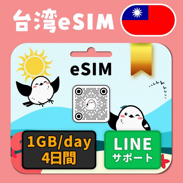 【台湾eSIM】4日間/1GB(1day)/最短即日発行/日本人による安心LINEサポート/有効期限90日/データ通信専用