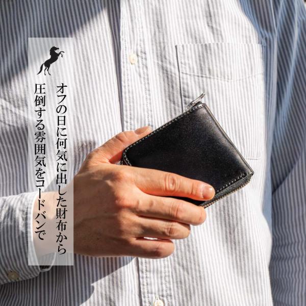 コードバン 二つ折り財布 ラウンドファスナー メンズ 革 本革 馬革 コンパクト 男性 財布 新喜皮革 本革 馬革 日本製 バレンタイン ギフト