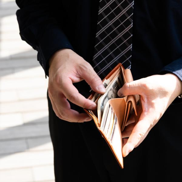 ビジネスマンにも合う二つ折りとカラーがメンズの定番です。